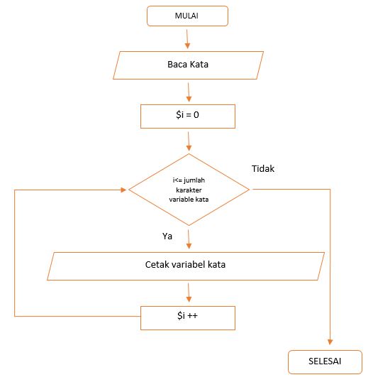 8. Jika nilai i masih kurang dari sama dengan jumlah karakter pada variabel $s maka akan diulang sampai nilainya terpenuhi